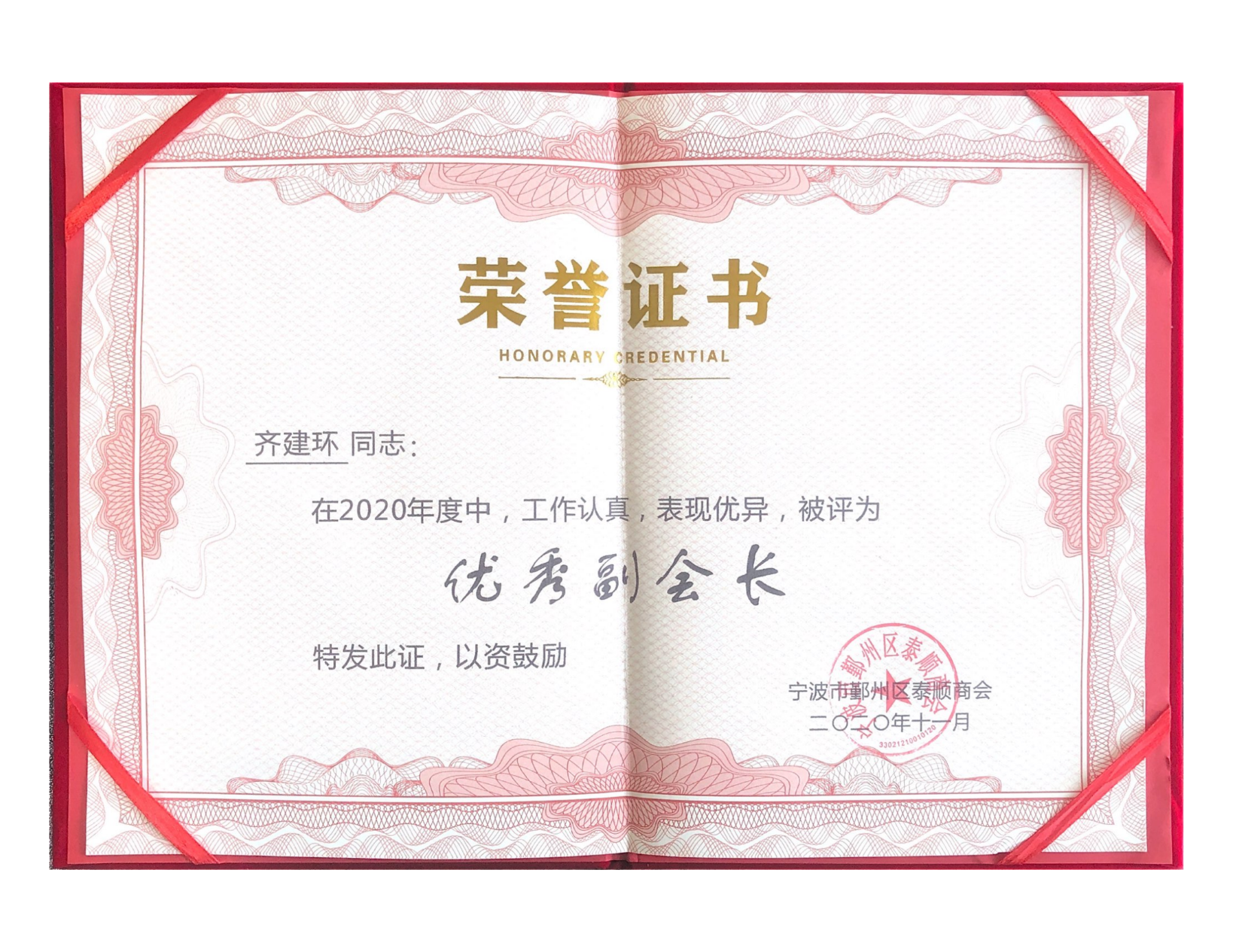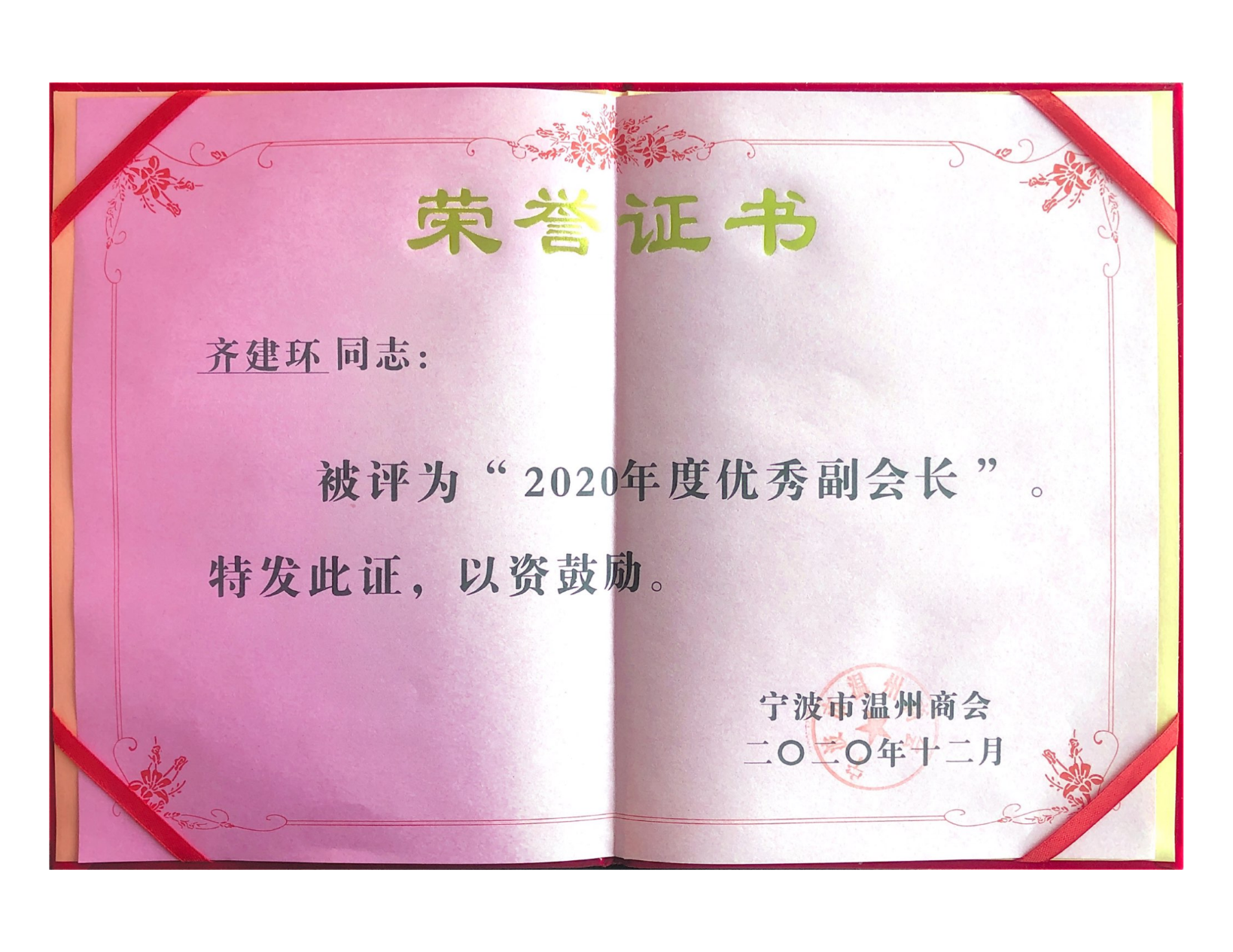 齊建環(huán)先生任2020年度溫州商會優(yōu)秀副會長