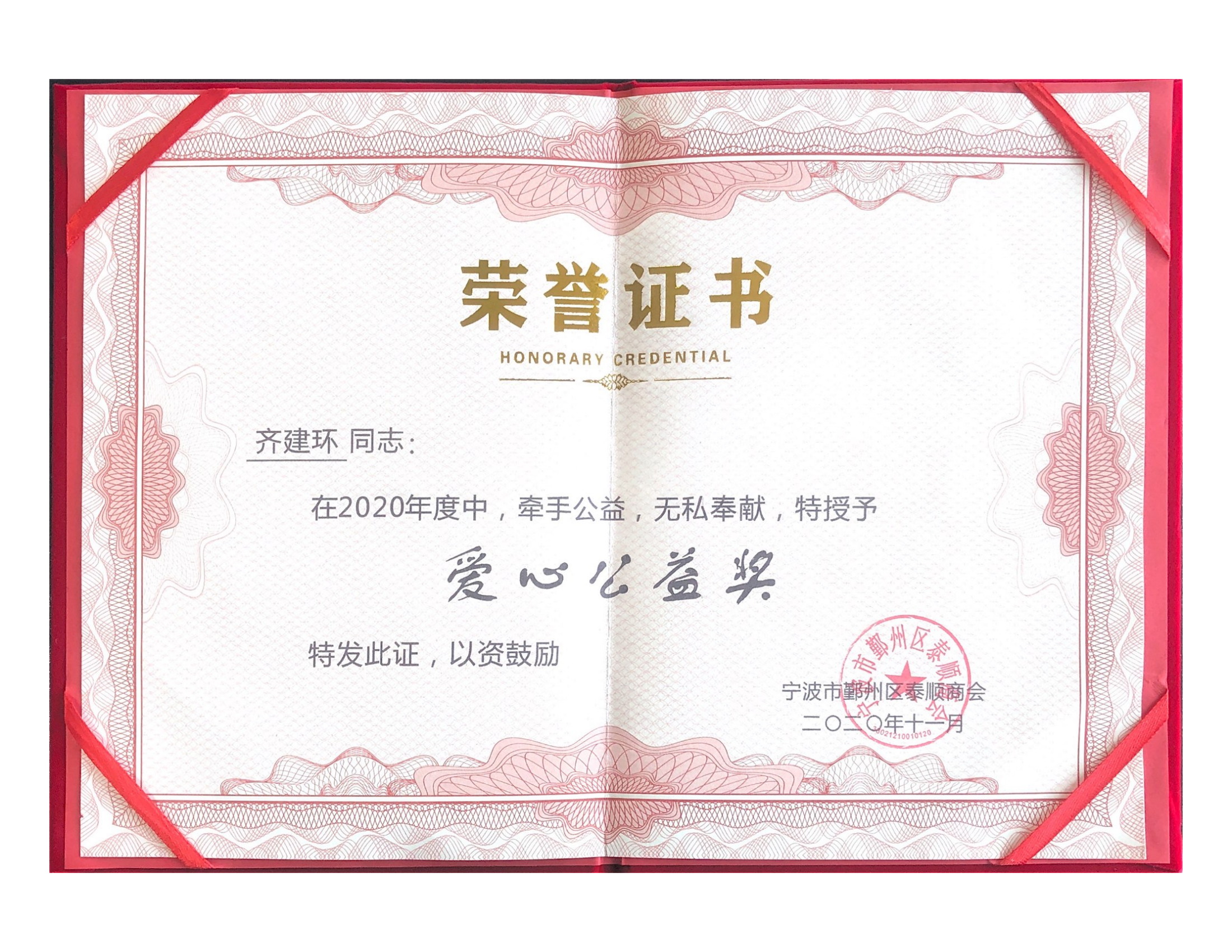 齊建環(huán)先生任2020年度泰順商會優(yōu)秀副會長